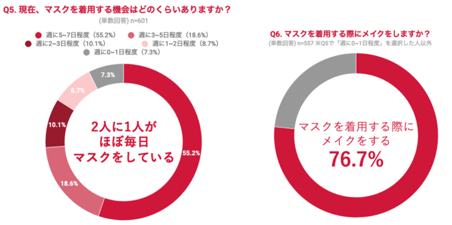 2人に1人がほぼ毎日マスクを着用! 76.7%がマスク着用時にもメイクをしている