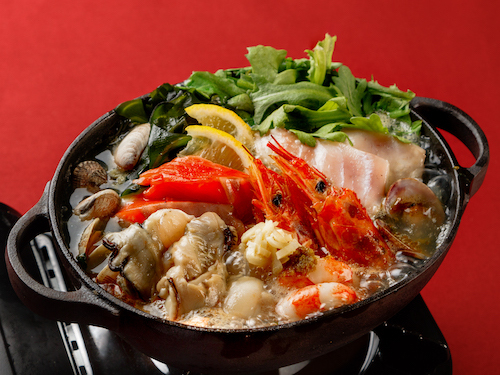 メ ニ ュー 名:岩手サラダ春菊と6種シーフード『冬の三陸』塩こうじ小鍋