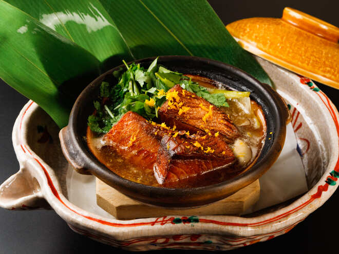 鰹出汁のベースに野菜の旨味と香ばしく揚げた鰤の旨味が加わった体も心も温まる一品です。液体塩こうじに漬け込むことで、鰤の身が柔らかくなり、出汁の旨味との一体感をより楽しむことができます。