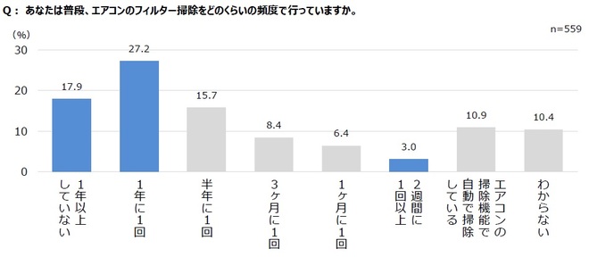 エアコンのフィルター掃除を1年以上していない人は17.9%