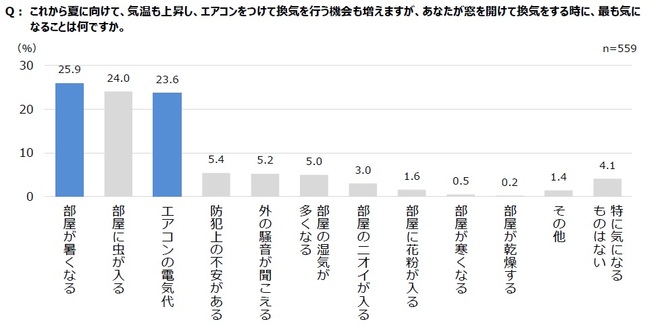 夏の換気時に気になるのは「部屋が暑くなる」「部屋に虫が入る」「エアコンの電気代」