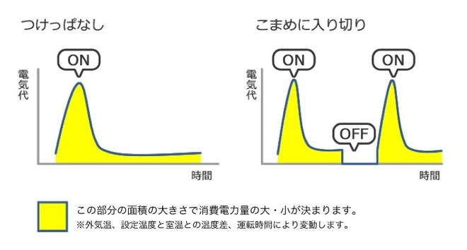 今年は自宅にいる時間が長く、エアコンの運転時間が伸びることに加え、エアコンを運転しながら窓を開けて換気をすると、どうしてもエアコンにかかる負荷が上がってしまうため、電気代が上がってしまうケースが増えると予想されます。ここではエアコンの使い方を工夫することで、少しでも電気代を節約して、換気とエアコン運転を上手に両立する2つのポイントをご紹介します。