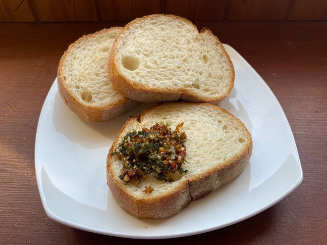 冷奴、サラダにトッピング、ガーリックトーストやパスタに混ぜてペペ ロンチーノ風、卵かけごはん、餃子の皮にとろけるチーズと一緒にトースターで軽く炙るとおいしくなります。