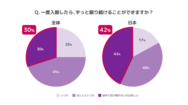 さらに、一度入眠した後に目が覚めてしまう「中途覚醒」をしてしまう人も、日本は42%と世界平均の30%に比べて大きく上回っています。