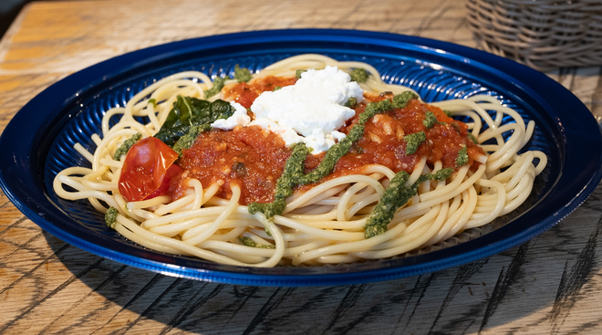 「成城石井自家製 イタリア産リコッタチーズとバジルのトマトソースパス」(647円/税込)は、トマトの酸味とリコッタのまろやかさがバランスよく、こちらも「ジョニーQ ヌーヴォ 2025」と好相性。