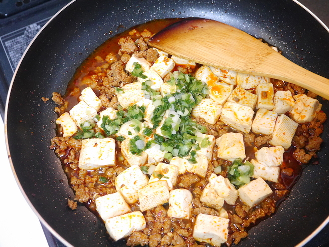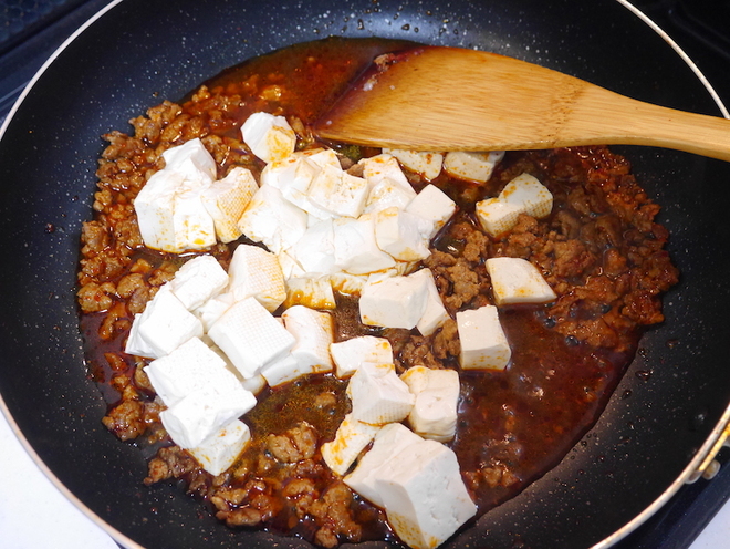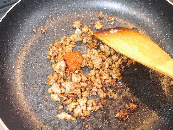 - 混ざったら、さらに豆板醤を加えて炒める。