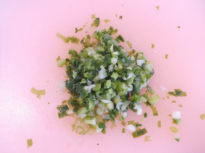 - ねぎはみじん切りにしておく。