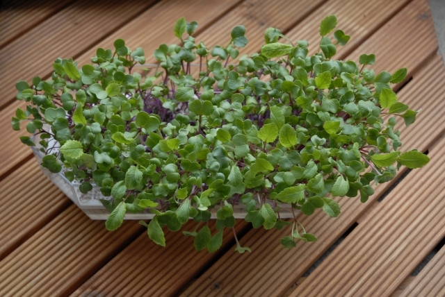 見た目はかいわれ大根とよく似ています。成長するとブロッコリーになりますが、栄養価が高いのはスプラウトの方。スプラウトの中では辛味が控えめで、食べやすいのが特徴です。