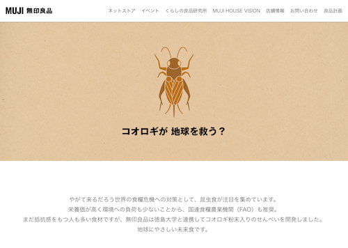 世界中の様々な国・地域において「感じ良いくらし」を提案する無印良品は、世界の急激な人口増による、今後の食糧確保と環境問題などの課題に目を向け、昆虫食の情報収集から始めました。