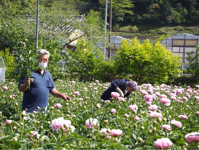徳島県那賀町は、西日本でも有数のケイトウやシャクヤクの生産地として知られ、以前からロスフラワー🄬の削減にも取り組んできました。今回の1泊2日のツアーでは、日常では味わえない花農家での体験が盛り込まれました。