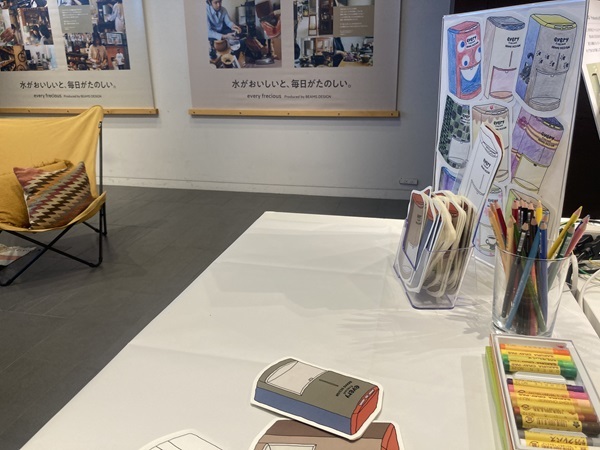 展示会ではインテリアスタイリスト・窪川勝哉氏が本製品をイメージしたリアルな暮らしを感じさせるインテリア空間を再現し、訪れた人が自由に体験しながら「every frecious Produced by BEAMS DESIGN」のある彩り豊かな日常をイメージできる場を創出。ウォーターサーバーのある暮らしをテーマに、来場者が自由な発想で新しいデザインを描ける参加型の「未来のデザインを創造する塗り絵コーナー」など感性を刺激するコンテンツも。大人から子どもまで楽しめ、暮らしにポップな遊び心を添えることでインテリアや家電からウェルビーイングに生きることができるライフスタイルを考えることができますよ。
